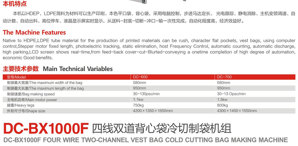 DC-BX1000F四線雙道背心袋冷切制袋機(jī)組